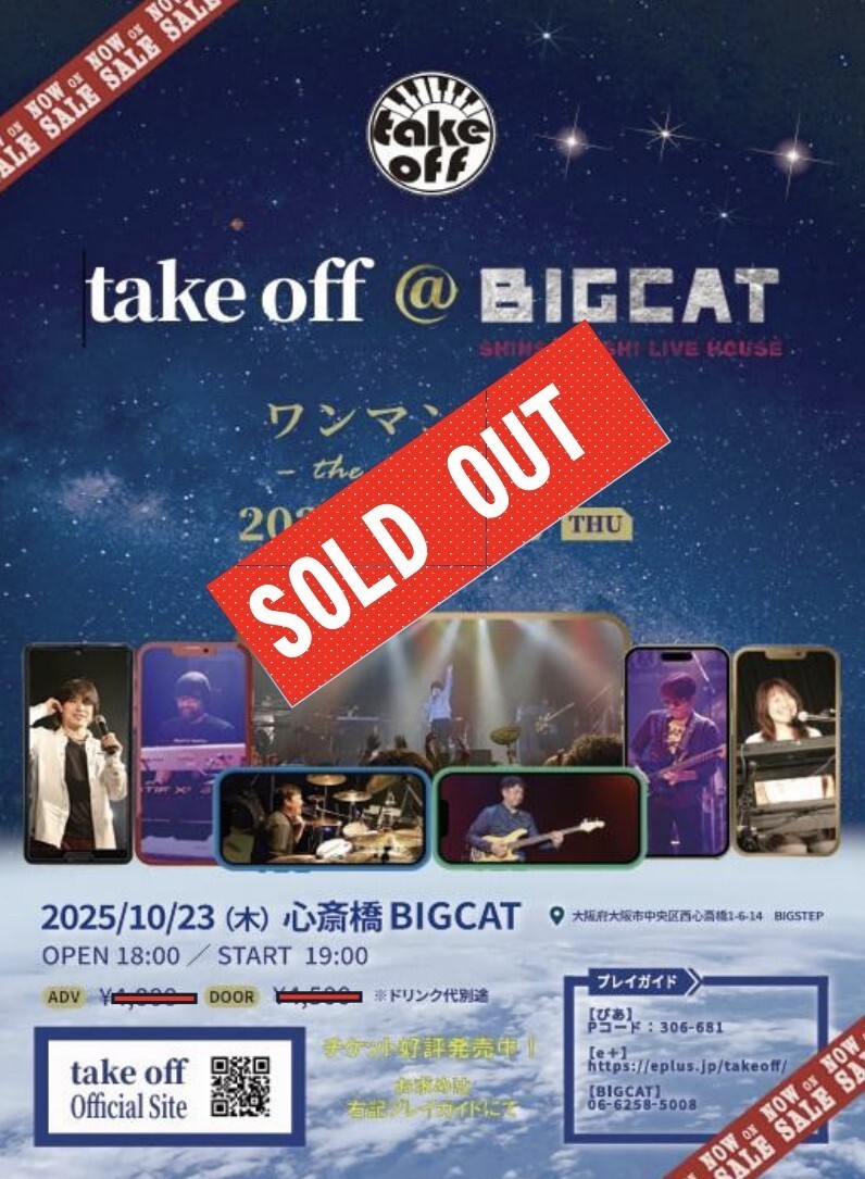 10月23日(木)心斎橋BIGCATにて開催されますtake off ワンマンライブ-the way to go-ですが